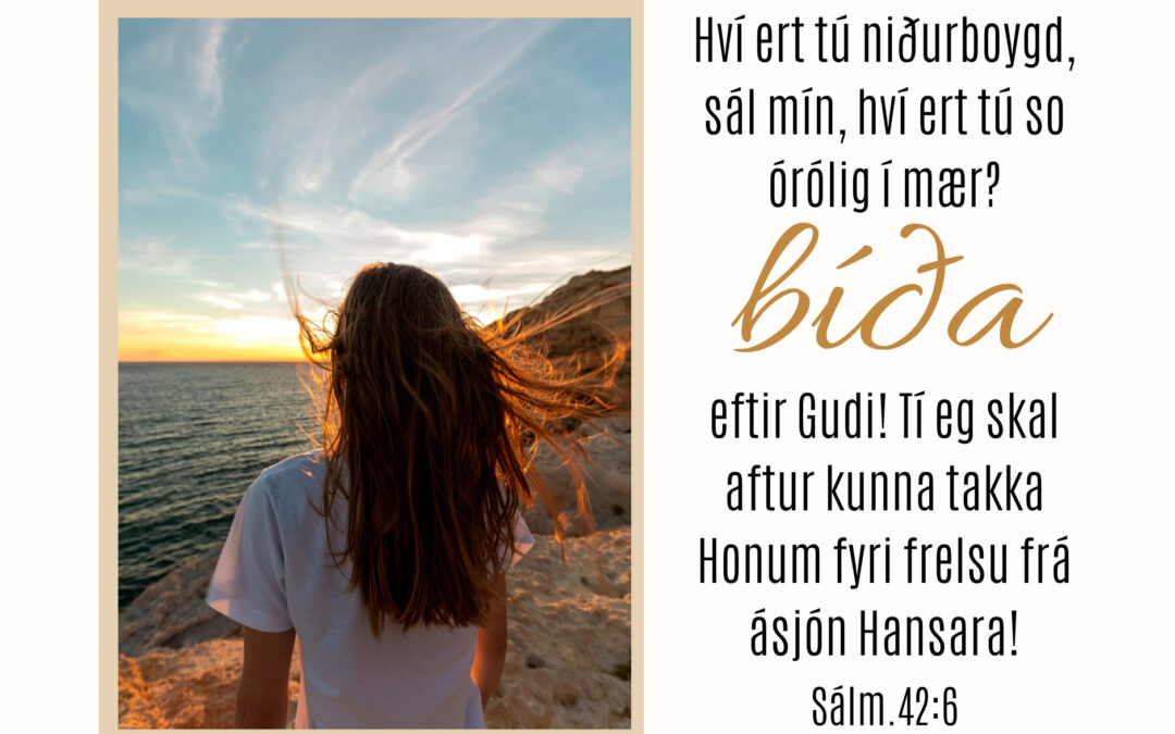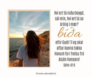 – Hví ert tú niðurboygd, sál mín, hví ert tú so órólig í mær? Bíða eftir Gudi! Tí eg skal aftur kunna takka Honum, frelsu andlits míns og Gudi mínum!