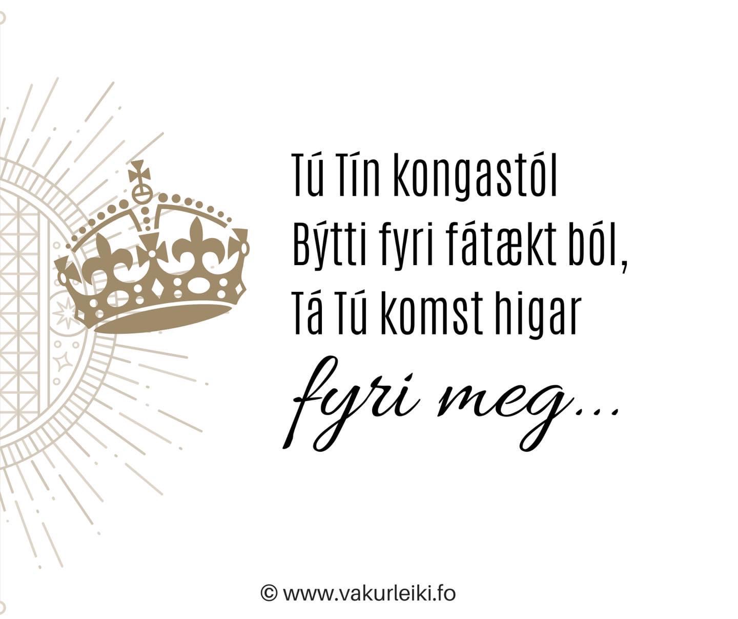Og táið Hann var stigin fram sum menniskja, setti Hann Seg sjálvan lágt, so Hann varð lýðin til deyðan, ja, krossdeyðan. Tí hevur Gud eisini sett Hann ógvuliga høgt og givið Honum navnið, sum yvir øllum nøvnum er,