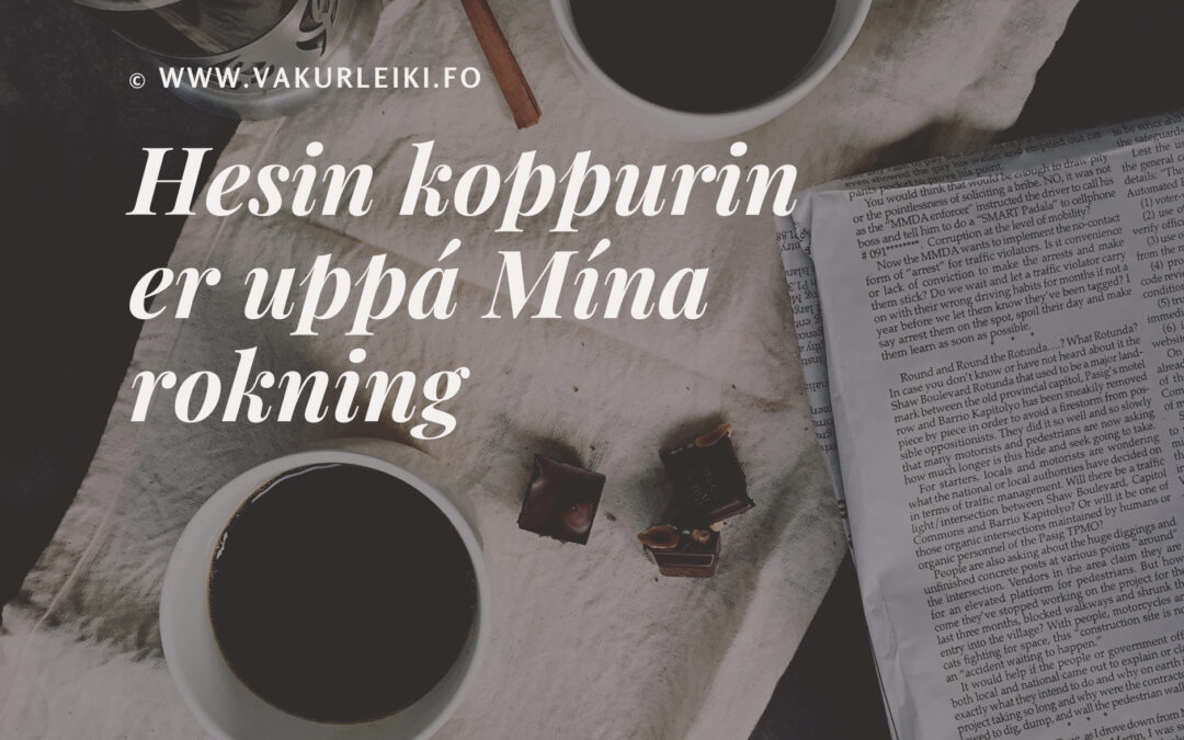 Sum eg hugdi upp, var møtt við einum stórum smíli og nøkrum mildum eygum, ið høvdu samkenslu við mær. Maðurin, sum hevði sagt góðan morgun, var Jesus. Hann legði hondina á herðar mínar og segði: “Eg síggi, hvat tað er, sum tyngir teg. Men hygg her, her er ein koppur. Hesin koppurin er uppá mína rokning.”