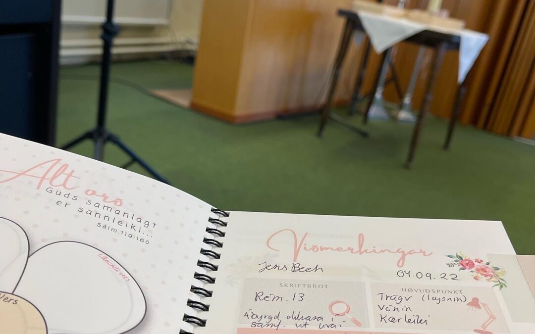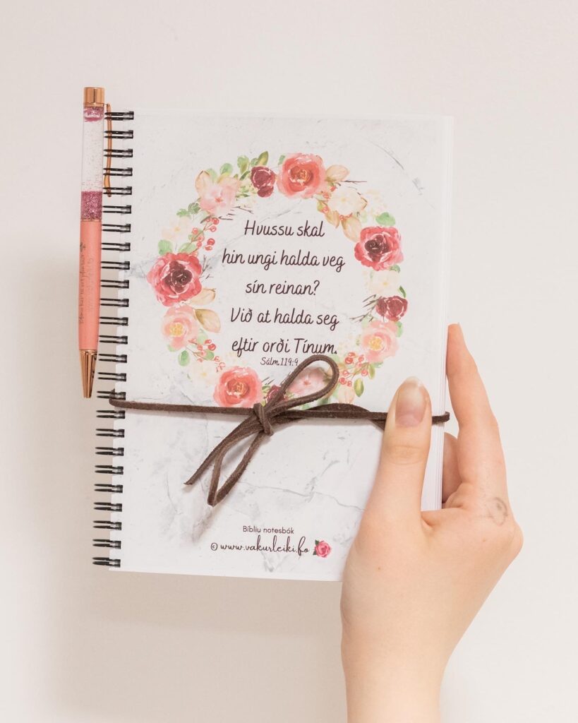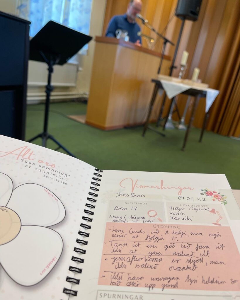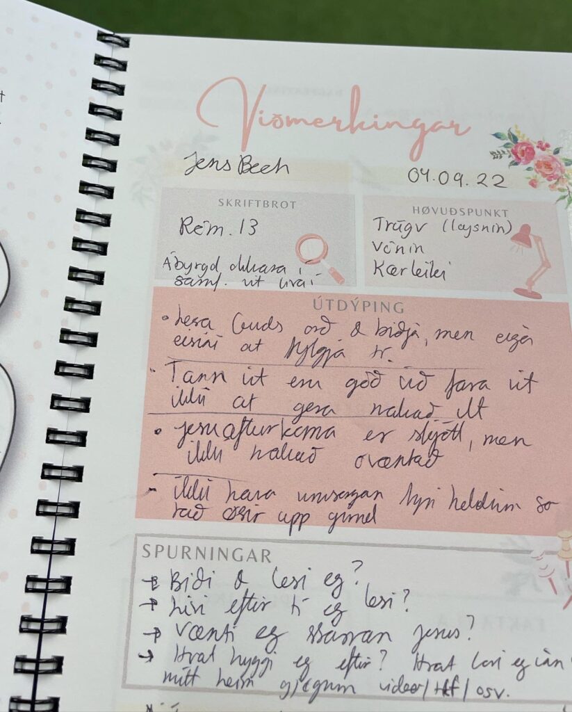 Eg brúkti hesa Bíbliu-notesbókina á morgunmøtinum í morgun, og tað hjálpti mær so væl at hugsavna meg, og fáa skrivað nøkur ting niður.